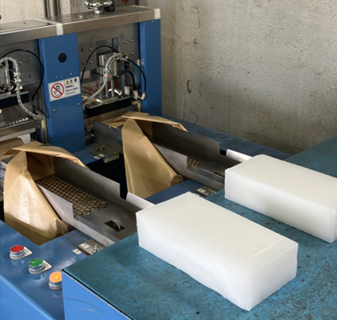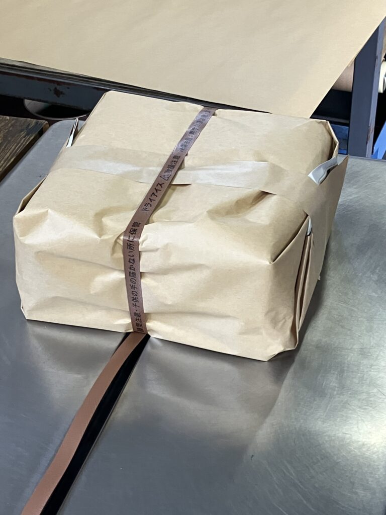 2.5kgのドライアイスは、クラフト紙で包んで包装します。